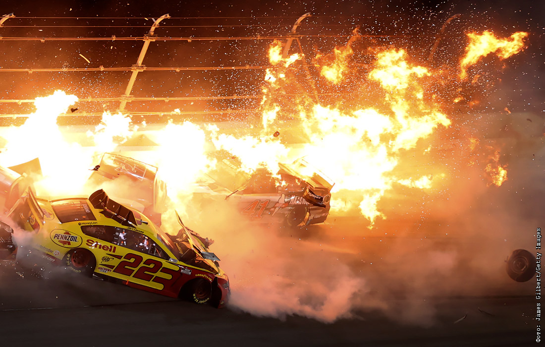 Авария во время проходящей в штате Флорида гонки нового сезона NASCAR "Дайтона 500"