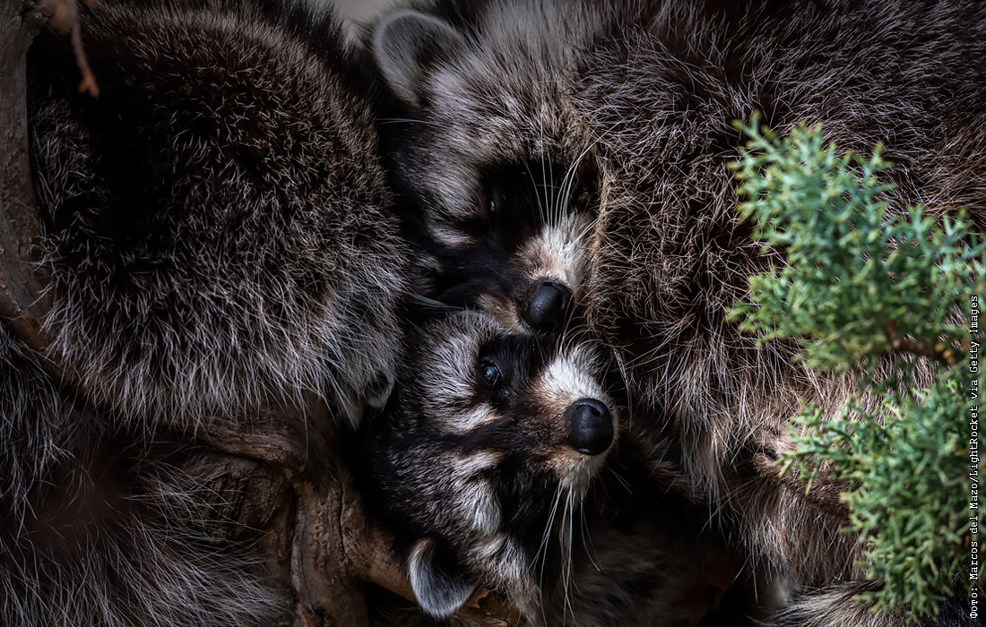 Еноты в вольере Мадридского зоопарка
