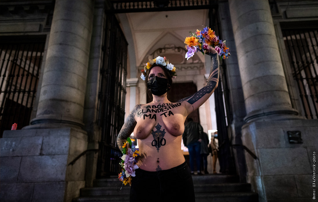 Активистки движения Femen устроили акцию протеста против запрета в Испании абортов перед одной из церквей Мадрида
