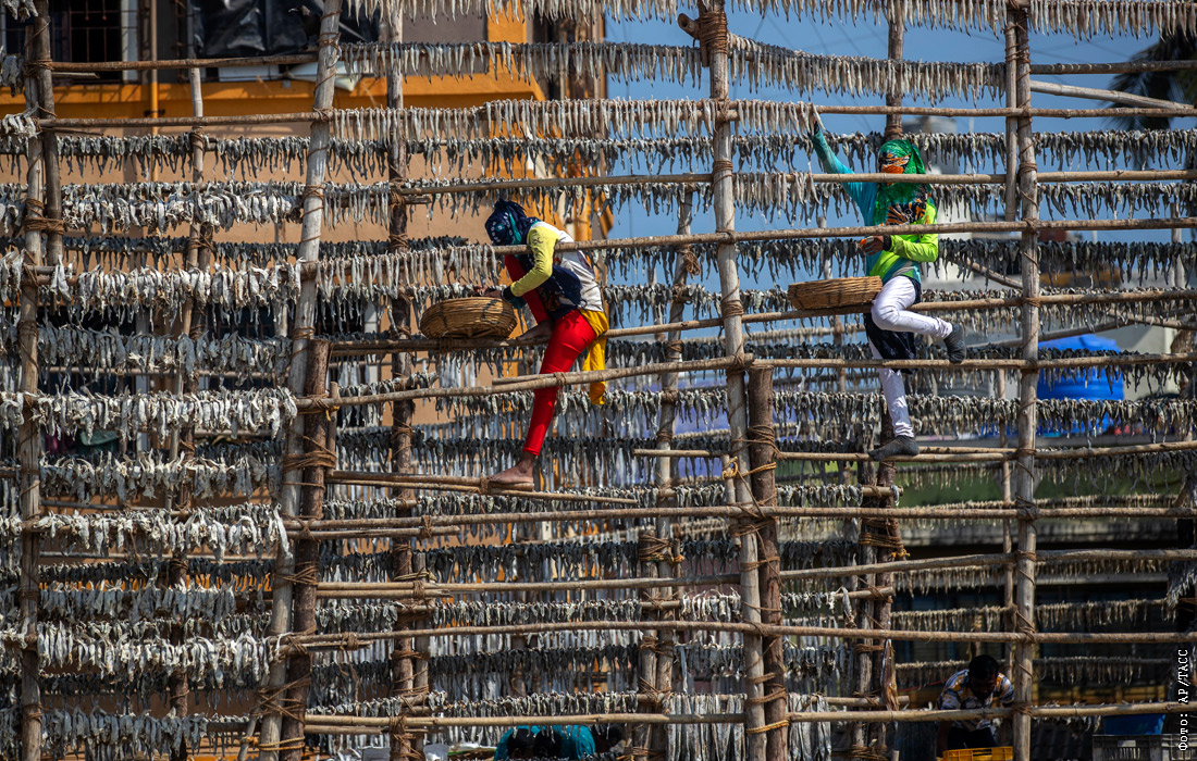 Сушка рыбы на бамбуке в пригороде Мумбаи