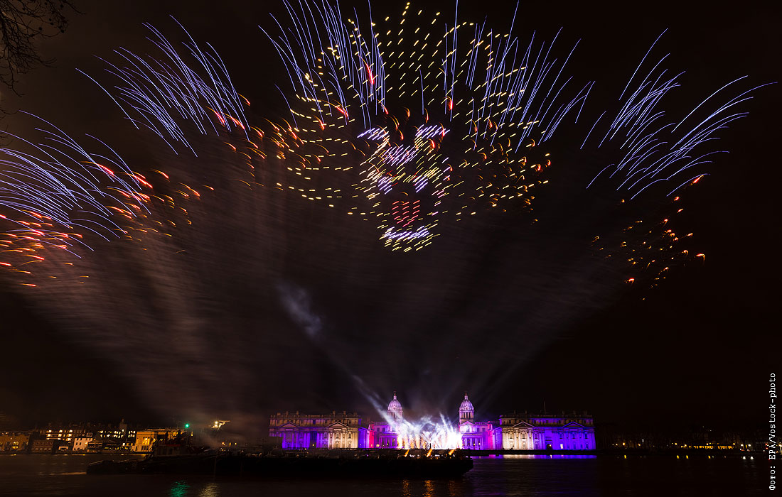 Лазерное шоу и фейерверк в Лондоне (Великобритания)