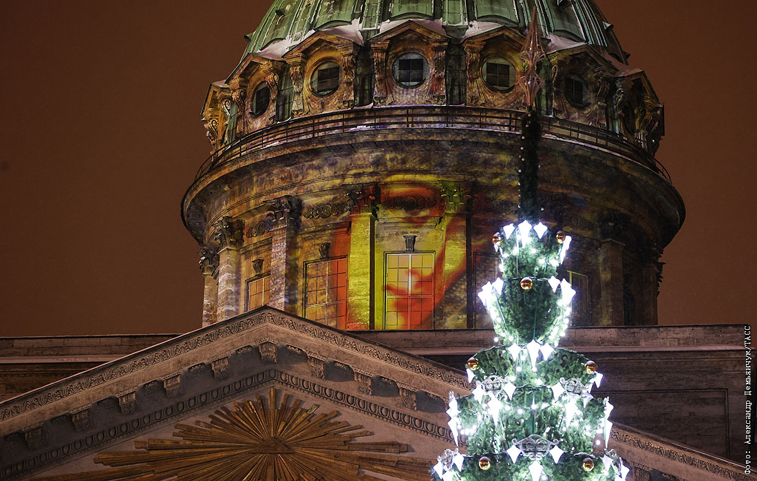 В Санкт-Петербурге. Проекция иконы на Казанском Кафедральном Соборе