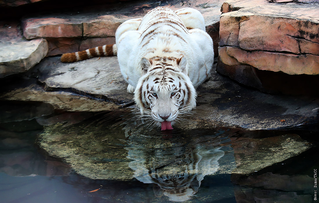 Белые тигры в парке дикой природы в китайском Наньтуне