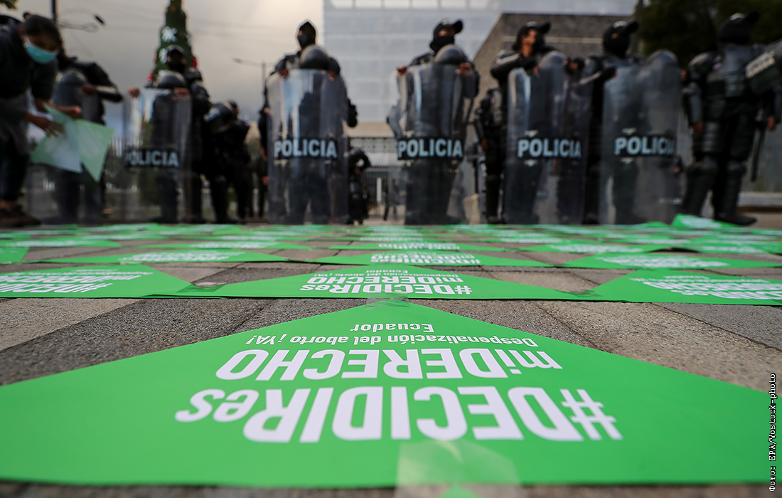 Парламентская комиссия в Эквадоре установила срок в 28 недель для прерывания беременности, наступившей после изнасилования. На фото: полиция охраняет здание парламента в Кито где проходили слушания.
