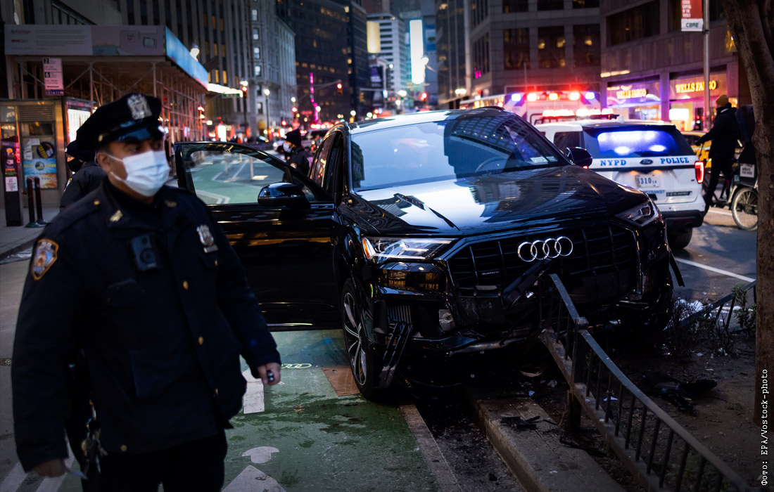 Сотрудник полиции Нью-Йорка на месте предполагаемого угона автомобиля