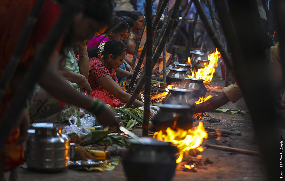 Празднование индийского фестиваля урожая в Мумбаи