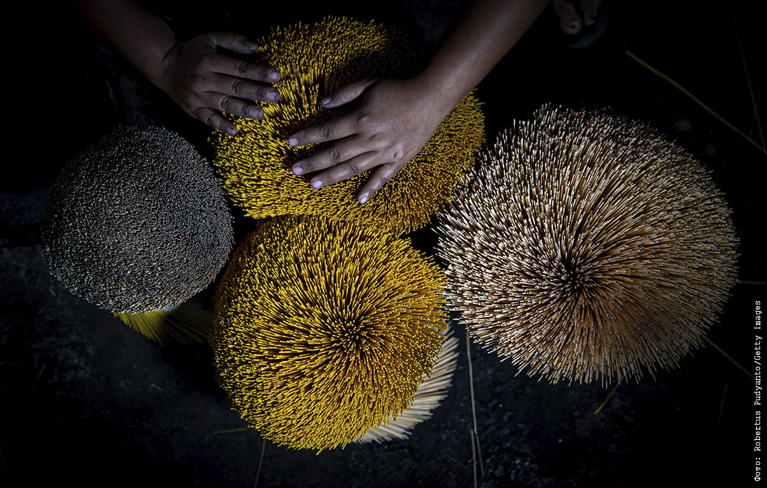 Индонезийские ремесленники делают ароматические палочки для китайского Нового года