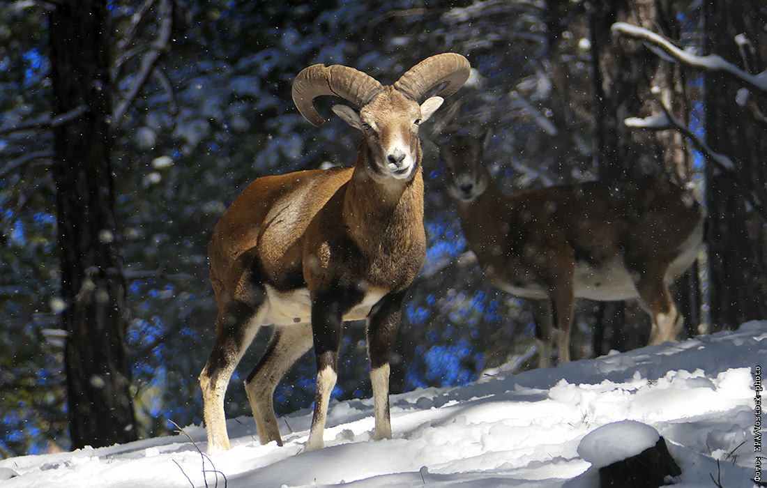 Муфлоны во время снегопада в горах Кипра