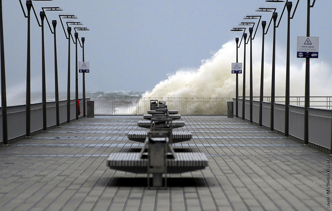 Шторм на Балтийском море в польском Колобжеге