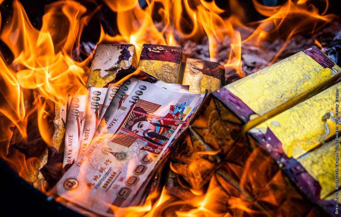 Сжигание фальшивых банкнот для задабривания духов в Бангкоке