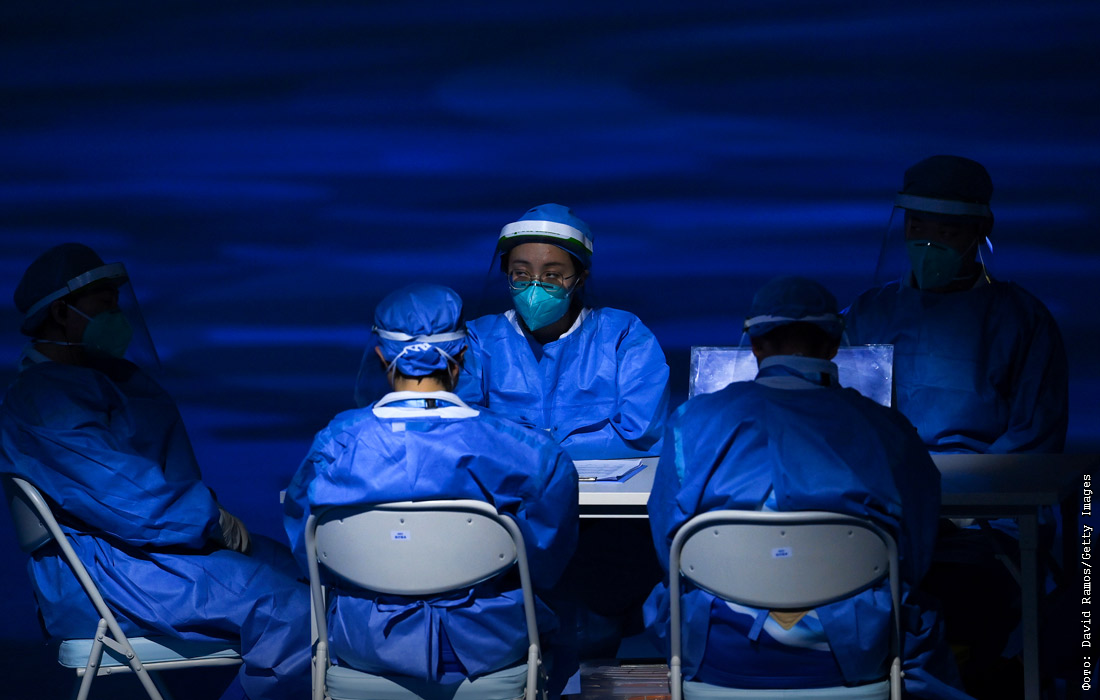 Медицинский персонал в Национальном конькобежном овале в Пекине