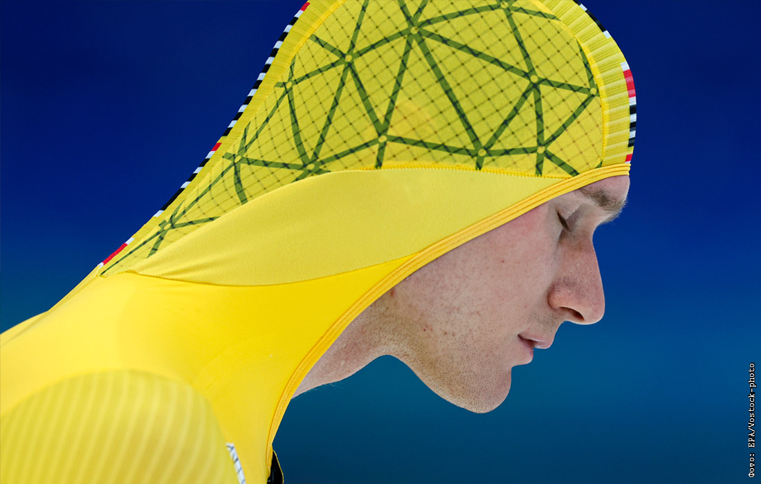 Матиас Восте из Бельгии готовится к соревнованиям по конькобежному спорту на дистанции 1500 метров