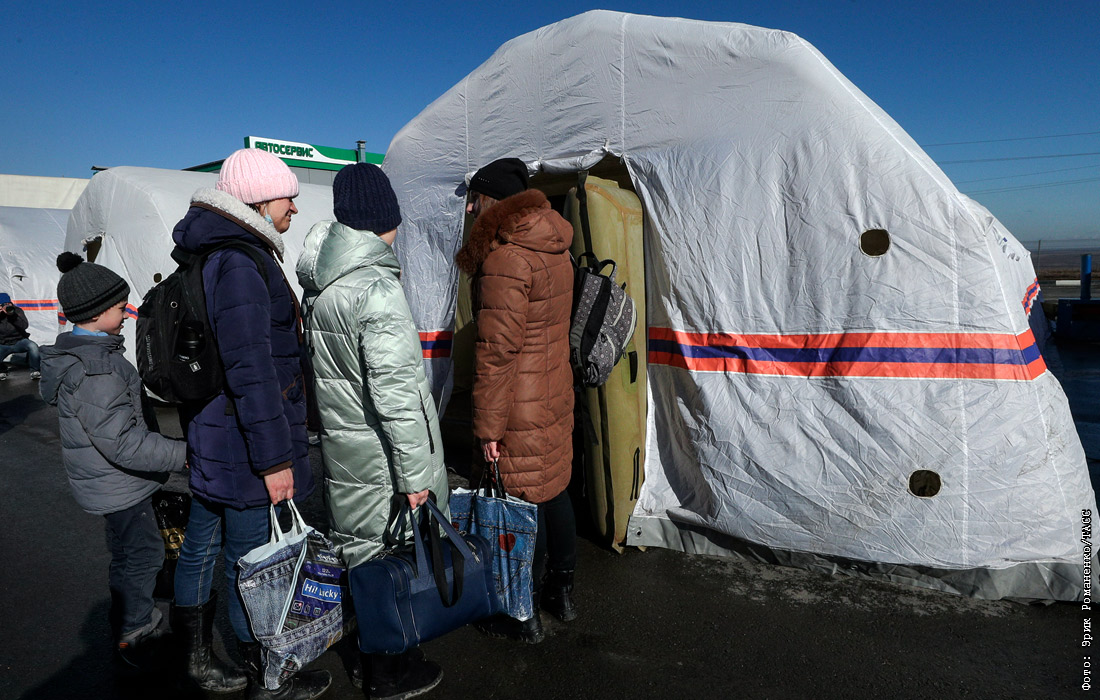 Власти ДНР и ЛНР организовали 18 февраля выезд населения в Россию из-за обострения вооруженного конфликта. В первую очередь эвакуируют женщин, детей и пожилых. Беженцев принимает Ростовская область. О готовности разместить прибывших у себя сообщили уже 26 регионов.