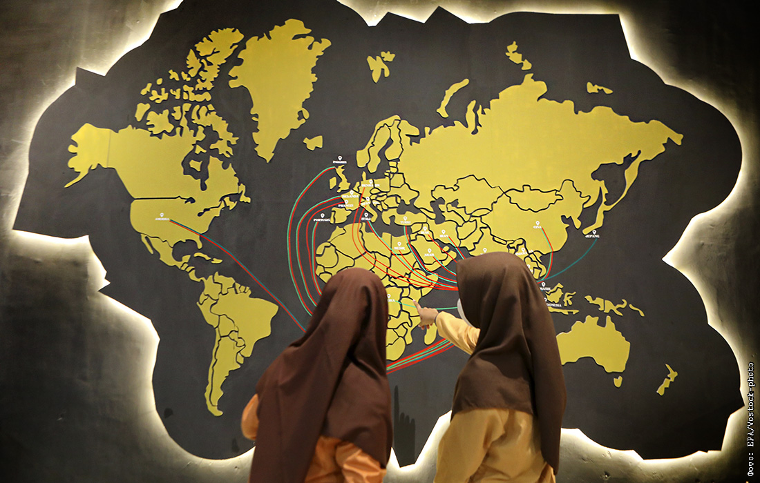18 марта. Индонезия начинает ослаблять карантинные ограничения. На фото: посетители музея осматривают коллекцию экспонатов, посвященных пандемии COVID-19.