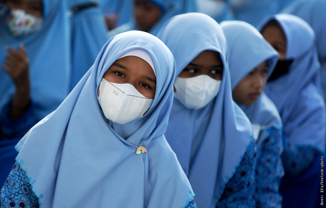 Ежедневный уровень заражения коронавирусом в Индонезии снизился более чем на 90% по сравнению с пиковым значением в середине февраля. На фото: урок в мечети в индонезийском Банда-Ачехе.