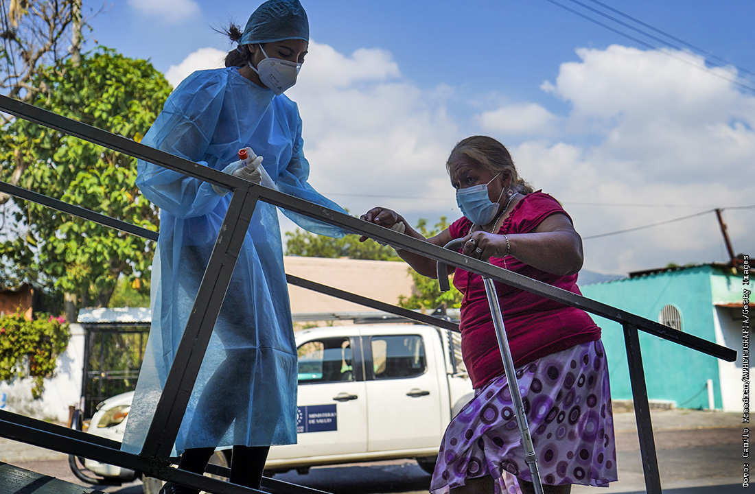 6 апреля. С начала пандемии в Сальвадоре зарегистрированы 161 570 случаев болезни и 4 121 смерть от COVID-19. На фото: тестирование на коронавирус в Сан-Сальвадоре.
