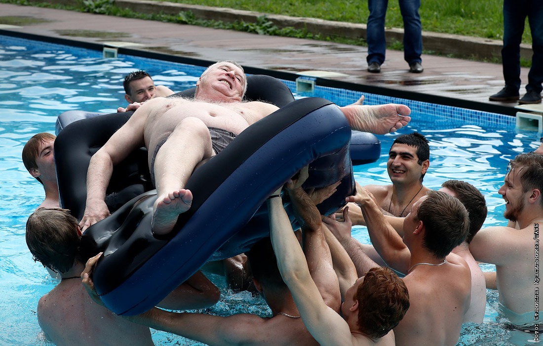 Владимир Жириновский во время подготовки ко Дню физкультурника на загородной базе ЛДПР. Август 2017 года.