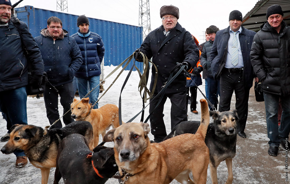 Политик посещает приют для собак в Москве. Январь 2018 года.