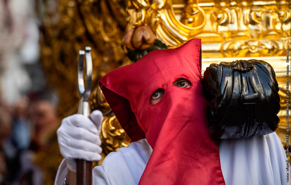 Кающиеся грешники принимают участие в религиозном шествии в Кадисе, Испания