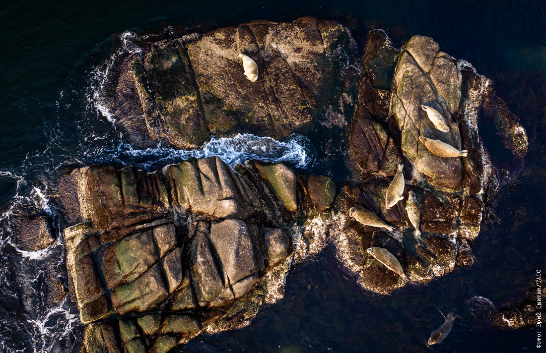 Тюлени ларга в бухте Кит в Приморском крае