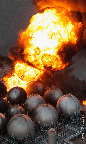 В Токио и его окрестностях в настоящий момент горят как минимум 14 крупных промышленных объектов, включая нефтехранилище и НПЗ. Огонь распространяется на соседние здания, несмотря на все усилия пожарных служб