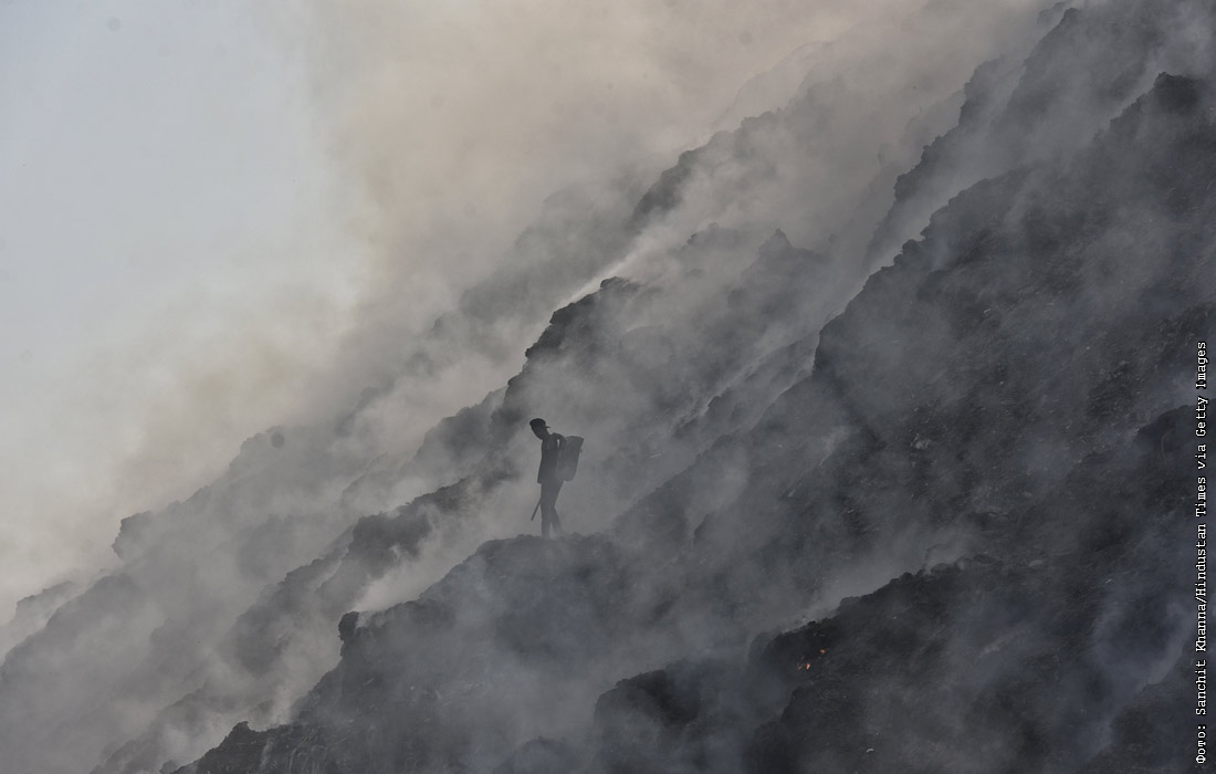 Столицу Индии Нью-Дели затянуло токсичным дымом от горящей свалки Бхалсва на северо-востоке города