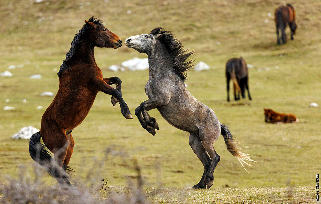 Дикие лошади на горе Цинкар в Боснии и Герцеговине