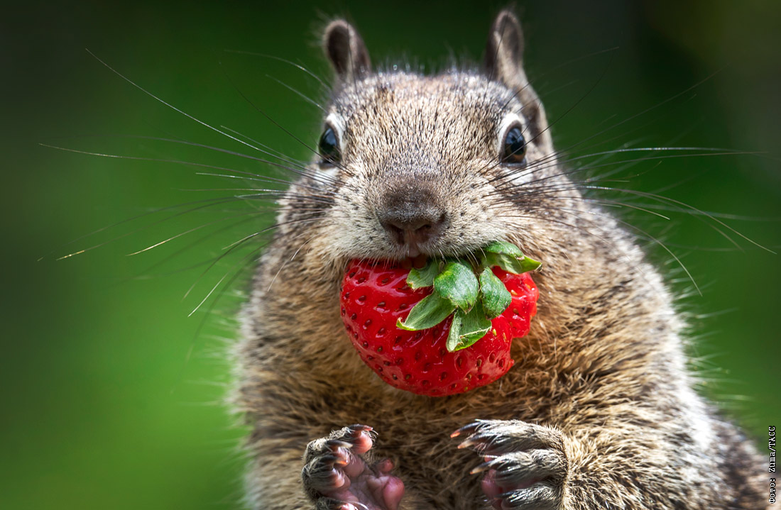 Калифорнийский суслик лакомится клубникой на юго-западе штата Орегон
