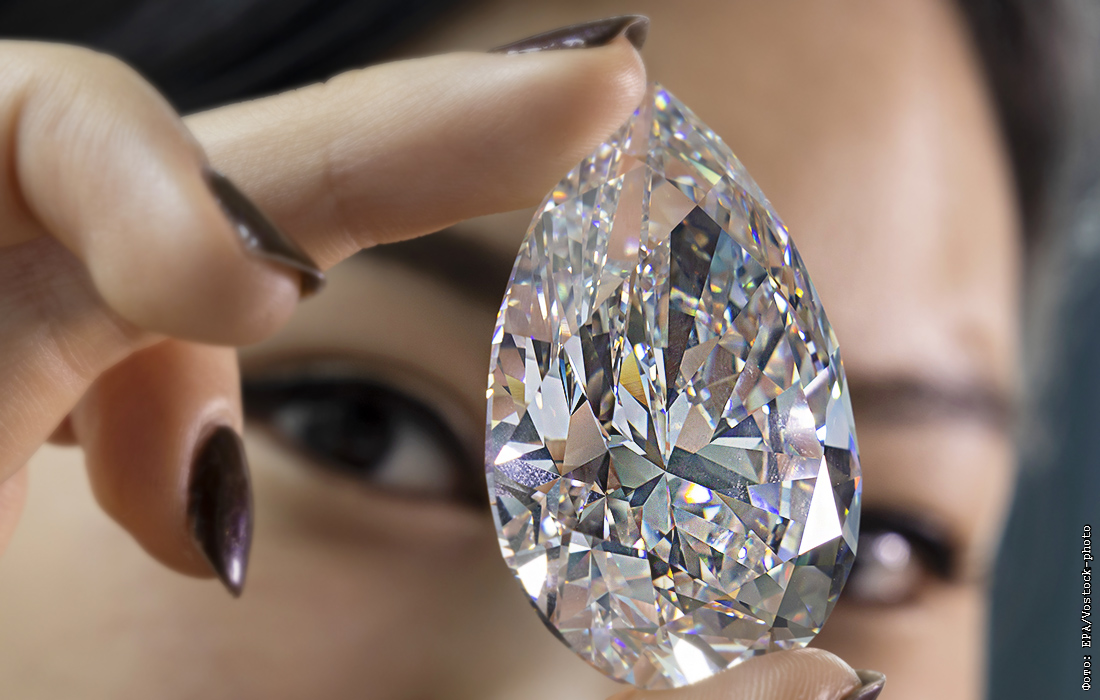 Бриллиант весом 228,31 карата (является самым большим выставляемым аукционным домом белым бриллиантом) во время предварительного просмотра на Christie's в Женеве