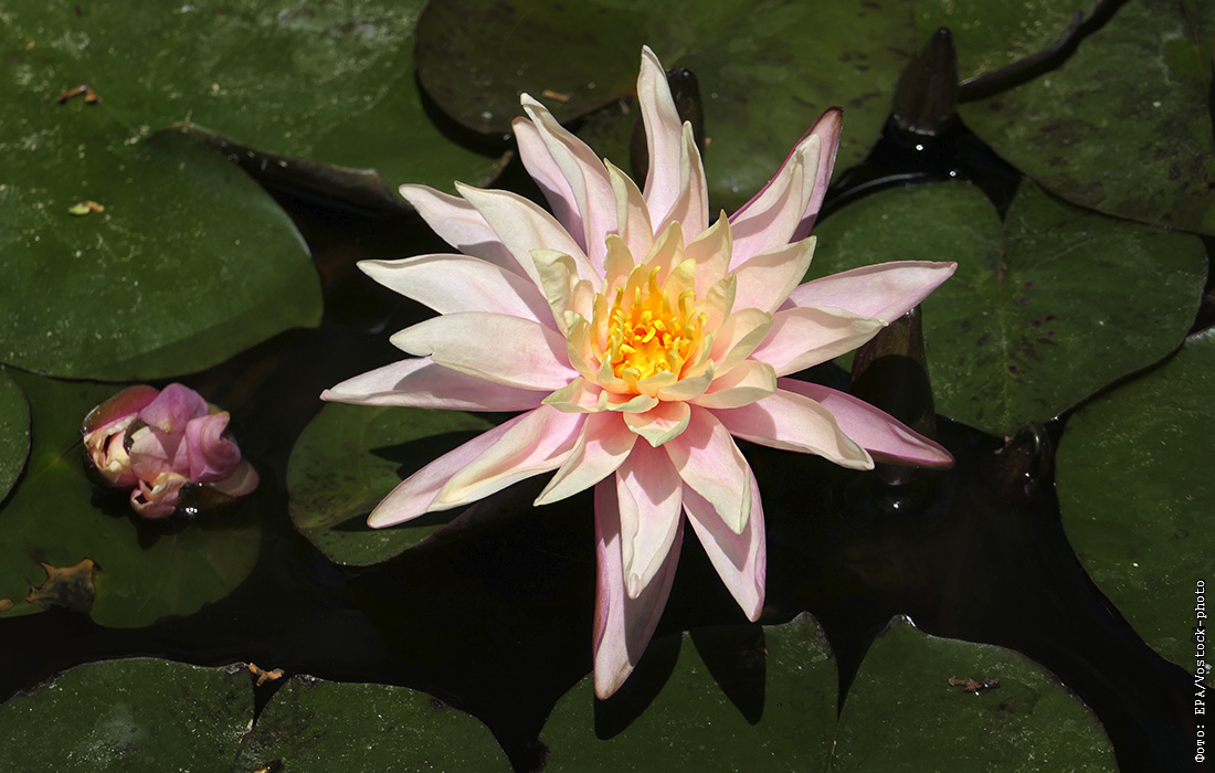 Цветение кувшинок в пруду в парке Никосии на Кипре