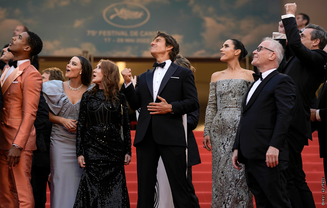 Съемочная группа картины "Топ Ган: Мэверик" наблюдает за выступлением пилотажной группы "Патруль де Франс"