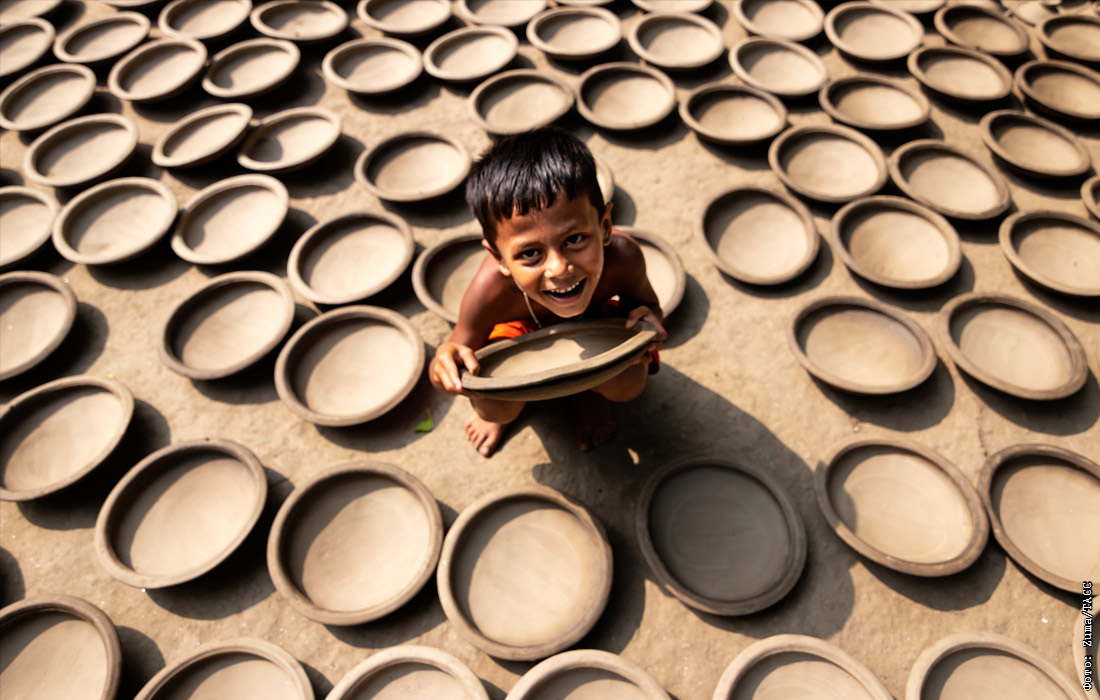 Ребенок среди глиняных горшков в Брахманбарии, Бангладеш