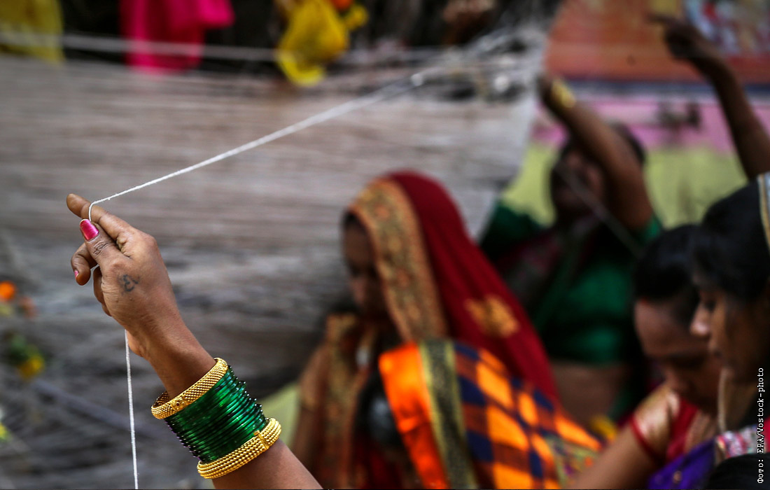 В Индии отмечают праздник Ват-Пурнима, во время которого замужние женщины молятся о благополучии своих мужей, обвязывая веревками баньяновые деревья