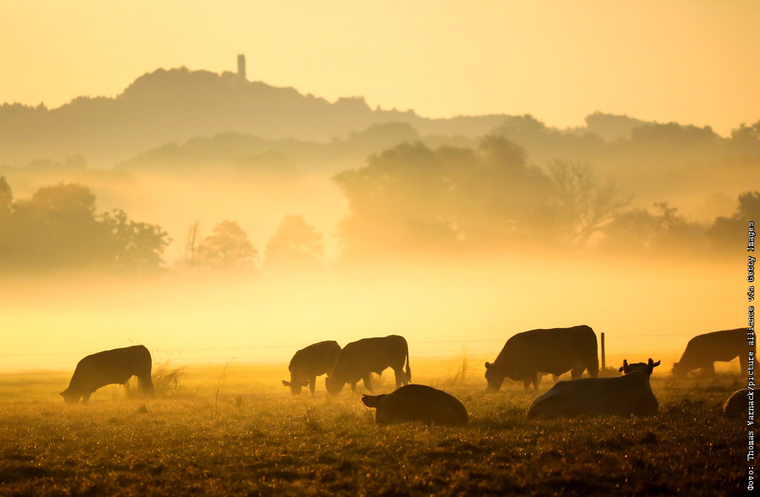 Восход солнца на пастбище в Баден-Вюртемберг, Германия