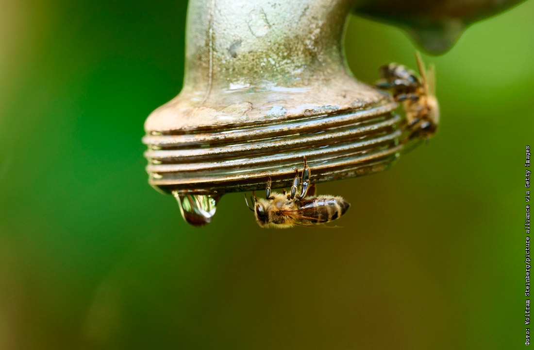 Пчелы в поисках воды. Берлин, Германия.