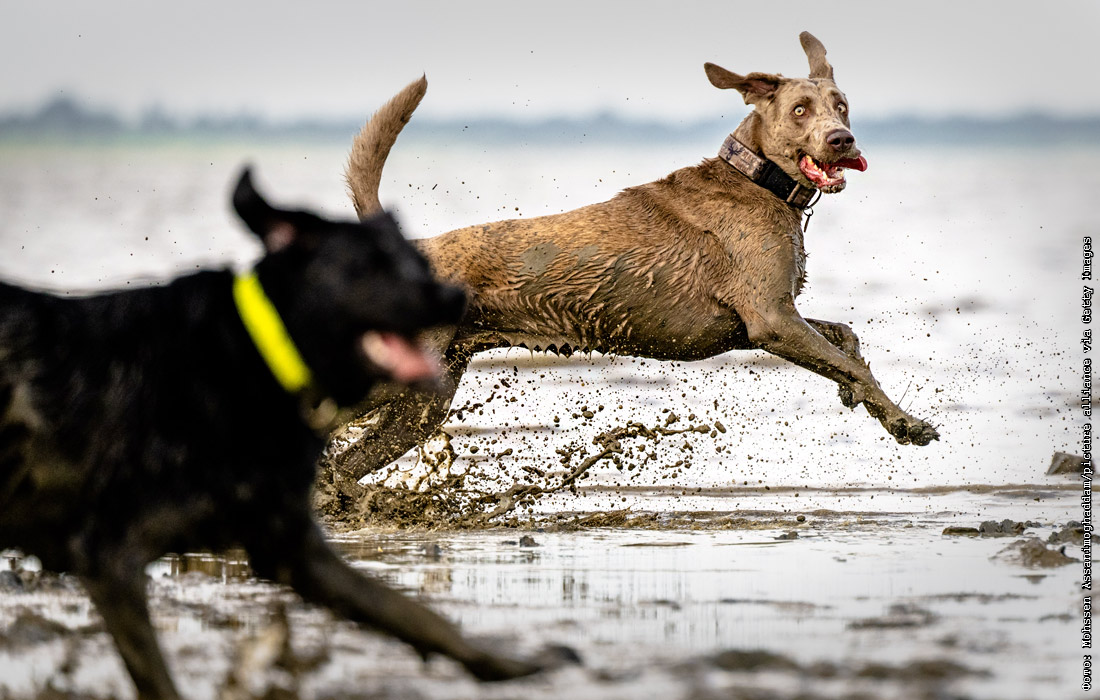 Собаки на побережье Северного моря в Дангасте, Германия