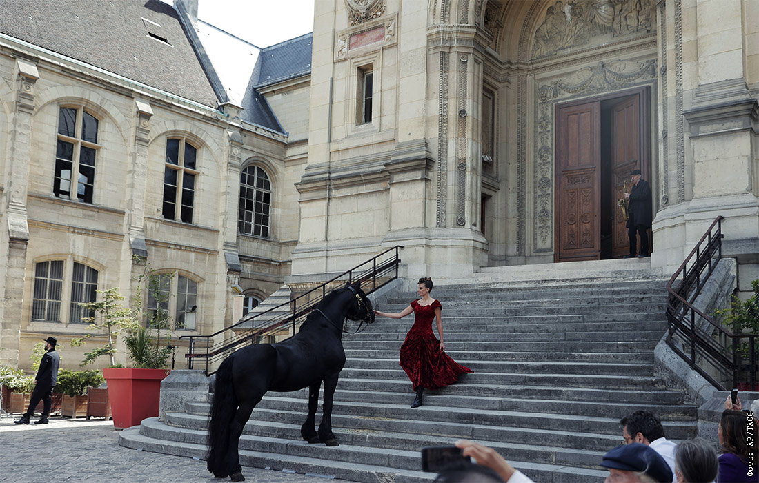 На первый взгляд может показаться, что все сошли с ума, но это просто показ коллекции Franck Sorbier сезона осень-зима 2022/23 на Неделе высокой моды в Париже
