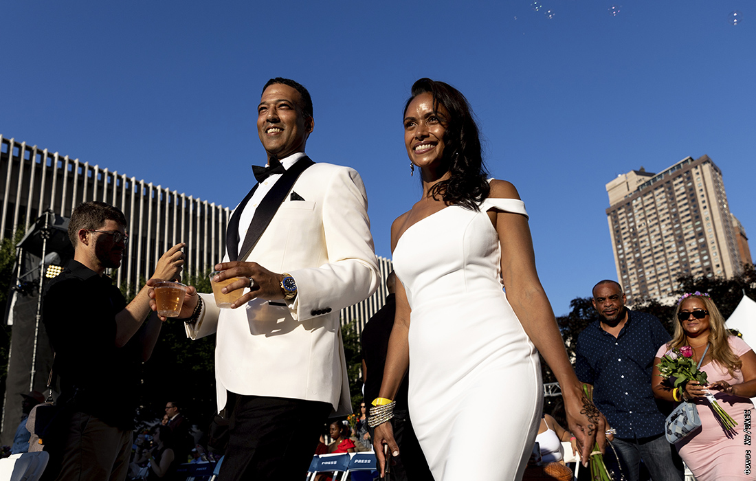 В Нью-Йорке более 200 пар приняли участие в массовой церемонии бракосочетания