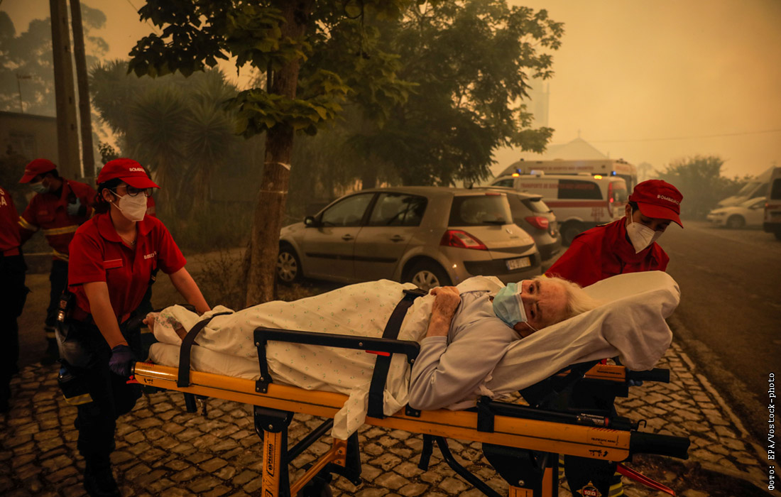 Лесные пожары охватили районы Лейрия и Сантарен. Спасатели эвакуируют пожилых людей из домов престарелых.