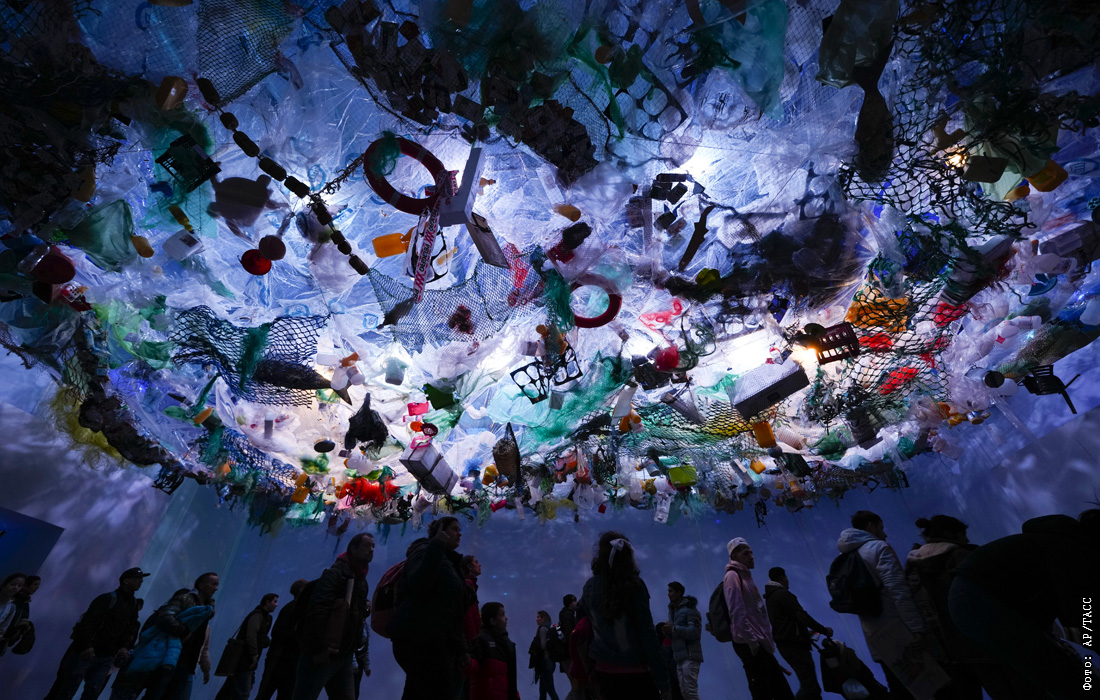 В Буэнос-Айресе началась 11-я выставка науки, технологий, промышленности и искусства Technopolis. На фото: посетители инсталляции, посвященной загрязнению воды.