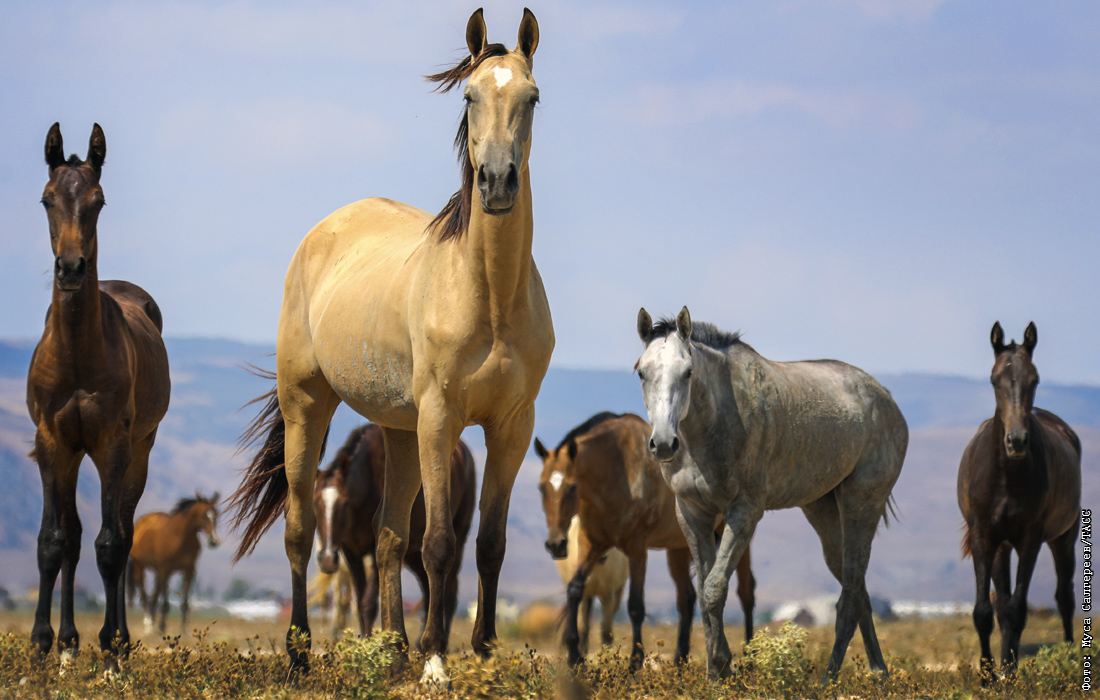 Лошади ахалтекинской породы в конюшне "Дагестанская" в поселке Турали