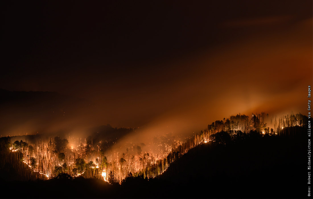 Масштабный пожар в Национальном парке Чешская Швейцария