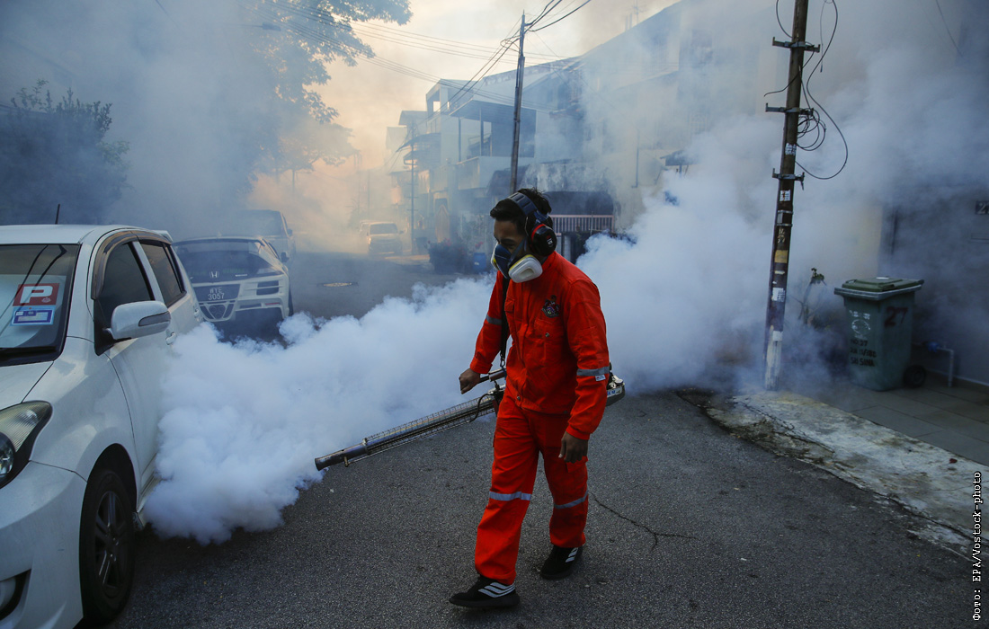 Дезинфекция улиц Куала-Лумпура в рамках борьбы с лихорадкой денге