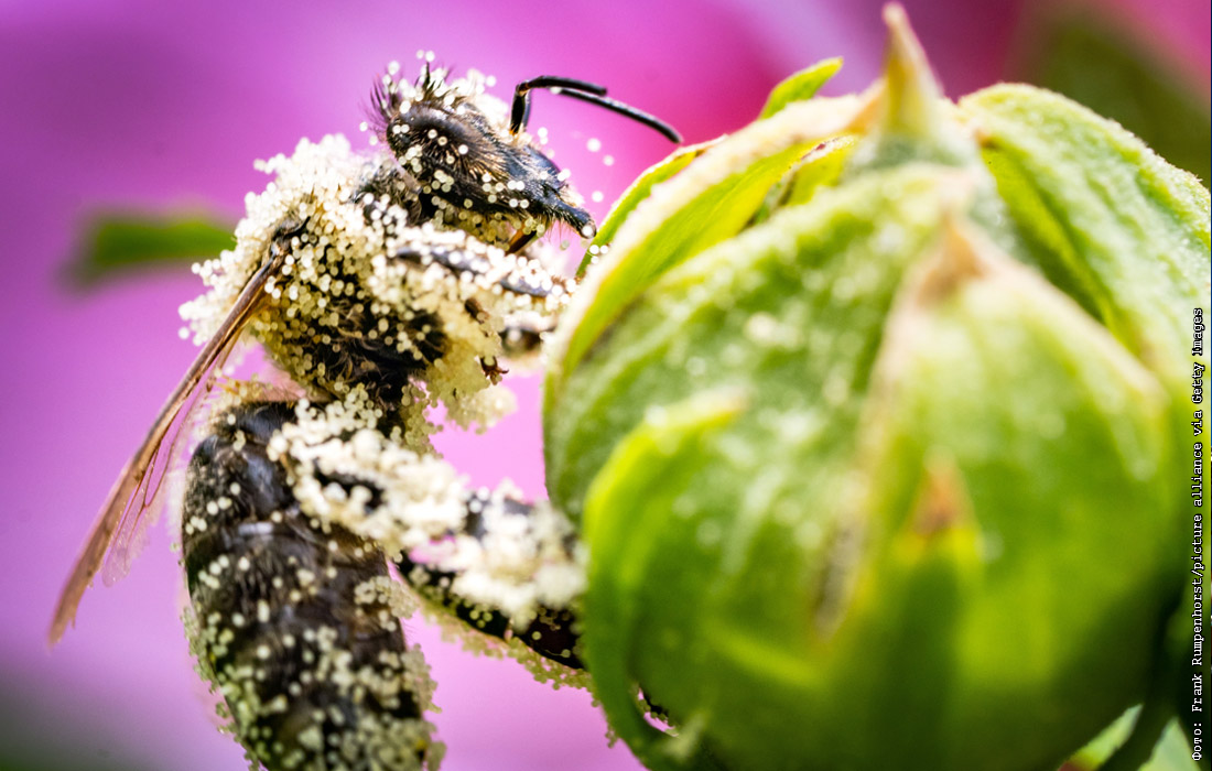 Покрытая пыльцой пчела во Франкфуртском ботаническом саду