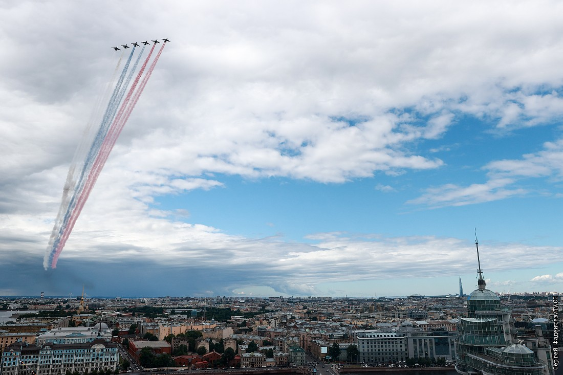 Четыре десятка кораблей и катеров, подводных лодок, парусных судов, 42 самолёта и вертолёта, свыше трёх тысяч военнослужащих задействованы в Главном военно-морском параде, который прошел в Санкт-Петербурге и Кронштадте в ознаменование Дня ВМФ России в воскресенье.