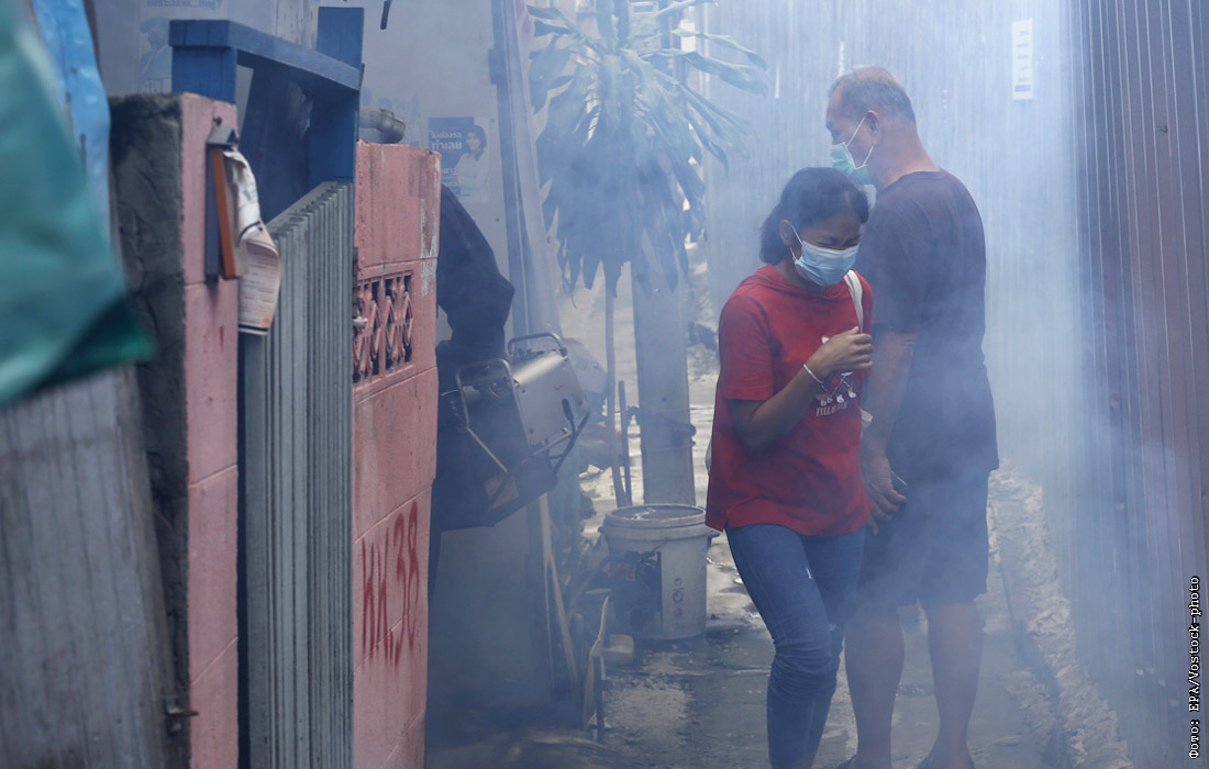 Санитарная обработка улиц Бангкока для предотвращения распространения лихорадки денге