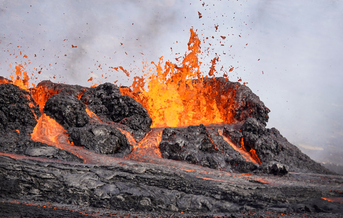 В Исландии началось извержение вулкана Фаградальсфьядль на полуострове Рейкьянес. Магма вышла на поверхность впервые с сентября прошлого года. Вулкан располагается в 30 км к юго-западу от столицы Рейкьявика.