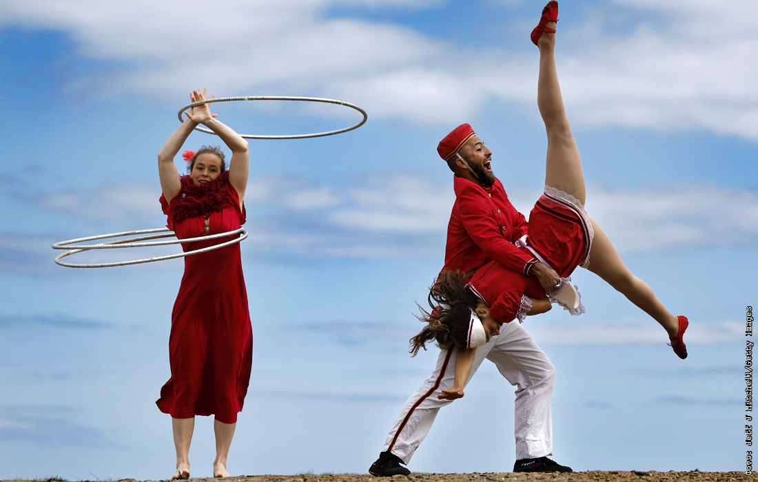 Цирковая труппа на вершине Калтон Хилл в Шотландии