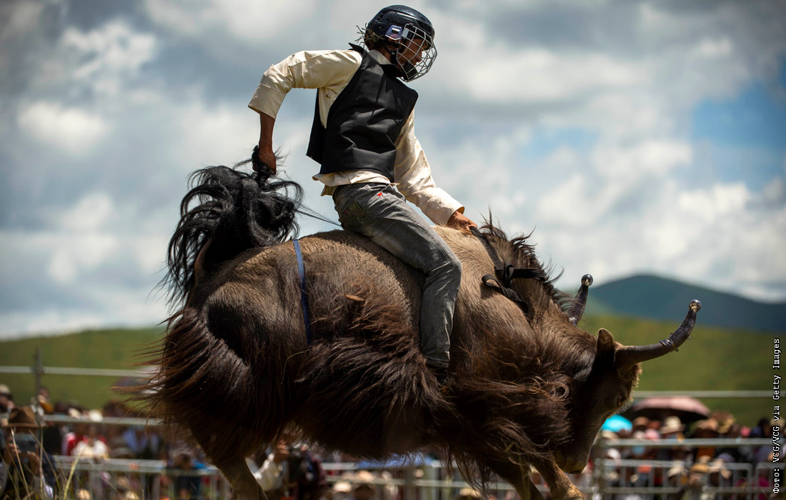 Соревнования по верховой езде на яках в уезде Хунъюань, Китай