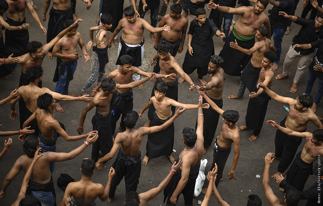 Индийские мусульмане-шииты бьют себя в грудь в ходе религиозной процессии в Ченнаи